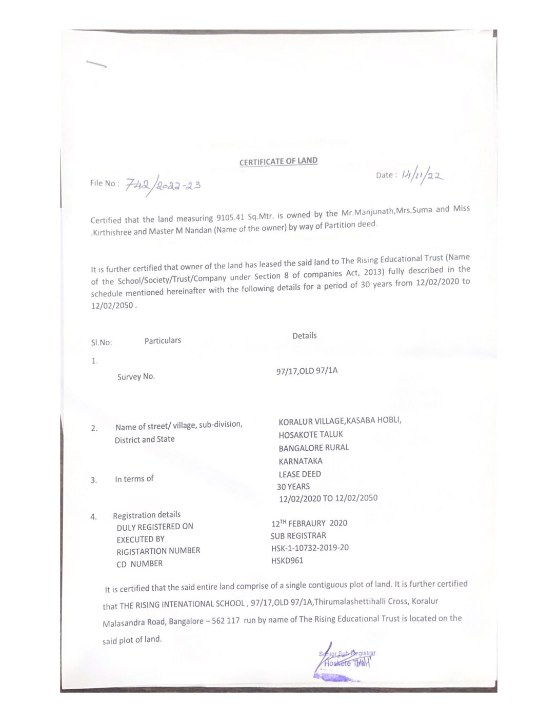 Land Certificate