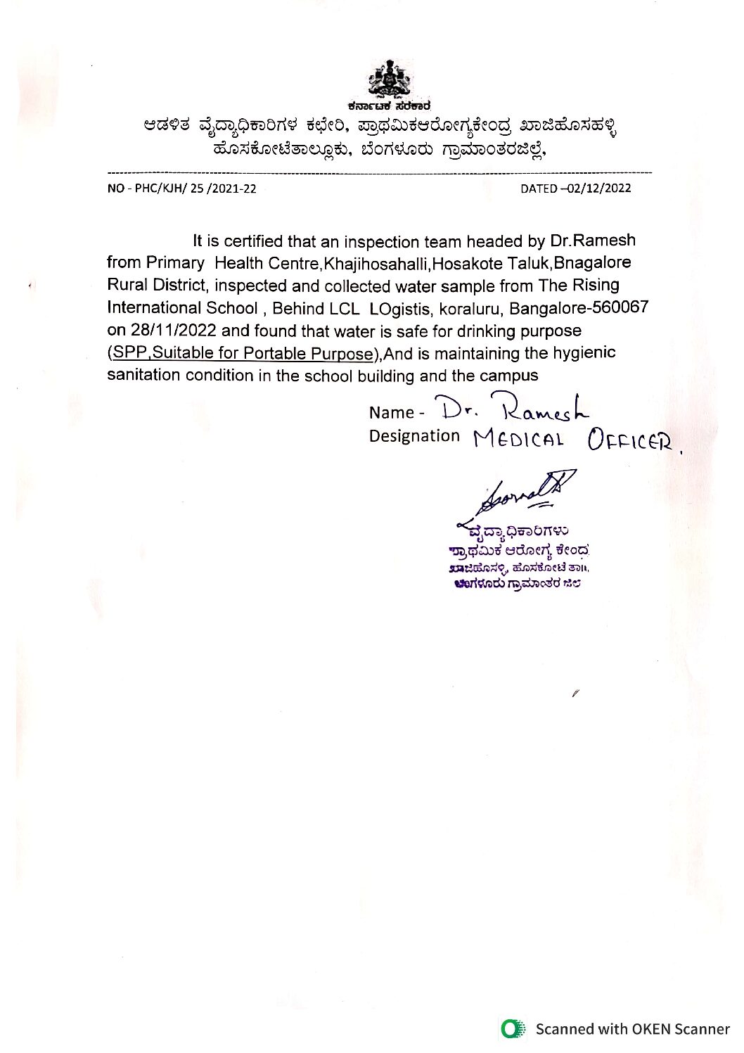 Sanitory and Drinking Certificate