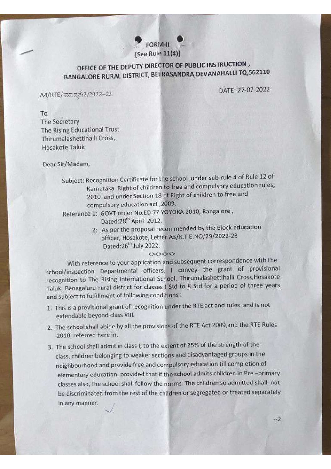 Recognition under RTE